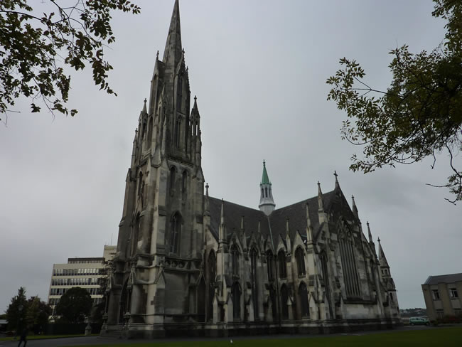 Dunedin to Catlins to BluffFirst Presbyterian Church, below, with its magnificent spire rising to 54 metres, opened for worship in 1873. We walked passed St. Paul's Anglican Cathedral, Municipal Chambers, Law Courts, Saint Joseph's Catholic Cathedral and many more. Select the photo below to see some of these other buildings. St Joseph's was constructed between 1878 and 1886, as funds permitted, and Godfrey, brought to New Zealand by William Larnach to work on his castle (next photo), carved the decorations and church furniture. Previous | Album | Next |