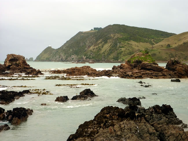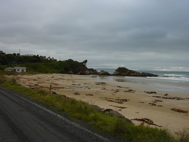 Dunedin to Catlins to BluffAs we drove along the Catlin Coast we were surprised that many houses were built right on the edge of the beach. What a great view!! They mustn't have too many big storms here? Click here to see what I mean. This coastal drive around the Catlin Coast is definitely worth doing if you have the time rather than sticking to the main highway. That is Nugget Point Lighthouse, built in 1870, in the distance. To get a proper feel for ‘The Nuggets’ we are told they are best visited at sunrise when the rock pillars and outcrops take on the orange glow of the sun. Unfortunately it was too early for us to stop so you will have to imagine that photo. Select the photo below to see the point and lighthouse close up. You can see how it got its name with the many 'nuggets' in the water out from Nugget Point. Previous | Album | Next |