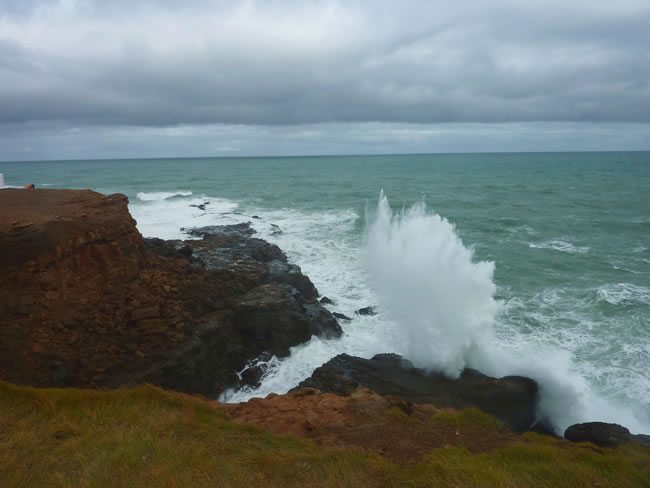 Dunedin to Catlins to BluffWe were glad we were here to see the coastline around Slope Point in this wild weather. It certainly had the WOW factor. It would also be interesting to share this view with the sheep on a calmer sunny day - maybe next time. Select the photo below to see more of this amazing area. Previous | Album | Next |