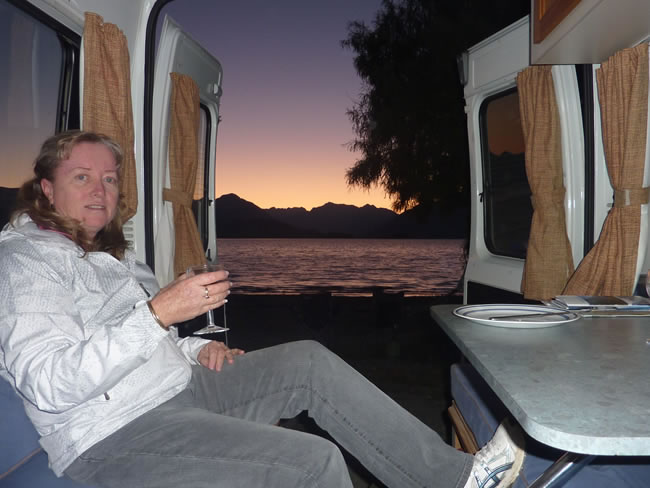 Invercargill to Fiordland to Milford, New Zealand TripLake Te Anau is the second-largest lake by surface area in New Zealand (after Lake Taupo) and the largest in the South Island. Once the sun went down behind the Murchison Mountains the colours were still lovely but it started to get a little too cold to continue sitting by the lake. Select the photo below and see if you can spot the moon over the lake. Previous | Album | Next |