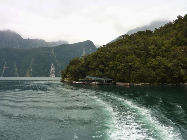 Invercargill to Fiordland to Milford, New Zealand TripOur cruise included a stop at the Milford Sound Underwater Observatory to see the fish and the corals that live in the area. I found it very surprising that red and black corals and other wildlife, anemones and sponges usually found in much warmer climates and in deeper water are found here! Select the photo below to see more this area as we get closer to the dock. Previous | Album | Next |