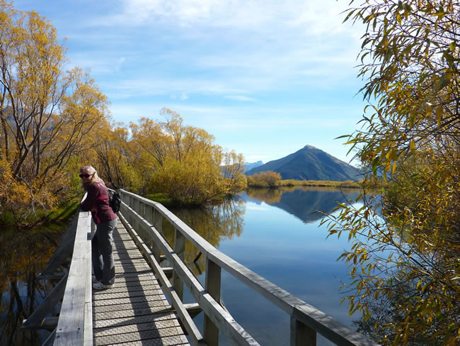 Queenstown to Haast Pass, New ZealandAs you walk through the wetlands along the boardwalk you can spot Black geese, Paradise ducks and Canada Geese. Select the photos below to see more of the area. We are actually not far from Milford and Fiordland National Park (as the crow flies) as we have travelled a big circle since leaving there. Previous | Album | Next |