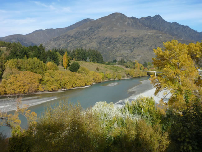 Queenstown to Haast Pass, New ZealandWe stopped for a view of the Lower Shotover River near where it meets the Kawarau River. This was where we came on our jet boat ride. Select the photo below to view this area from another angle. Previous | Album | Next |