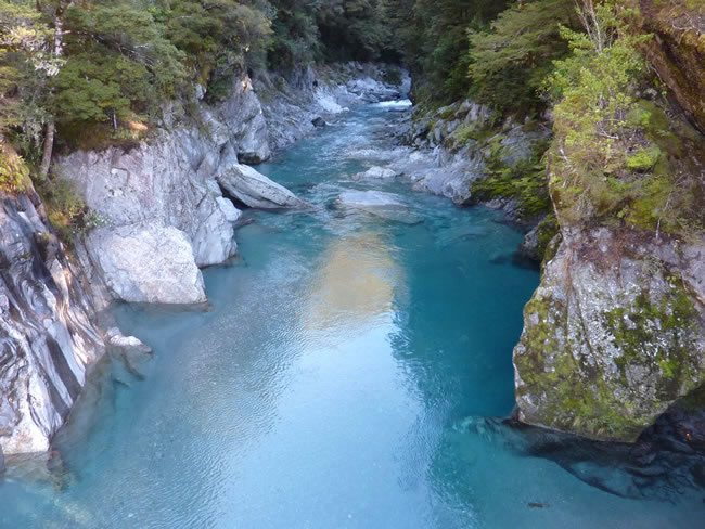Queenstown to Haast Pass, New ZealandJust lovely... hard to not keep taking photos! I am told that large brown and rainbow trout can often be seen feeding in the pools but we didn't spot any and the water is clear enough to see. Select the photo below to see it from another angle.  |
