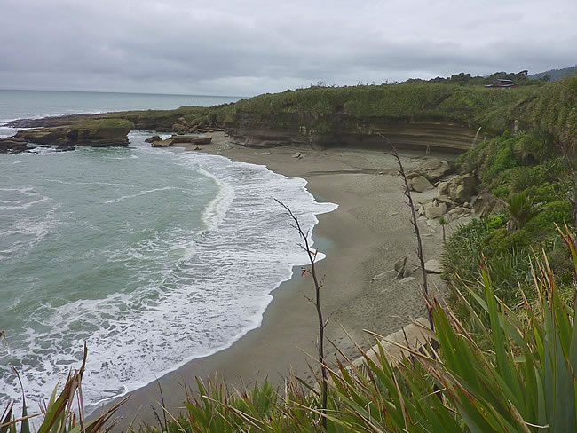 Punakaiki to GoldenBay, South Island, New ZealandWe drove on another 2 - 3km and found another sign at Te Miko Beach for the Truman Track. This walk wound its way through a sub-tropical forest of trees, nikau palms, flax and vines coming out 15 minutes later on a spectacular coastline. Select the photo below to see more of this area. Previous | Album | Next |
