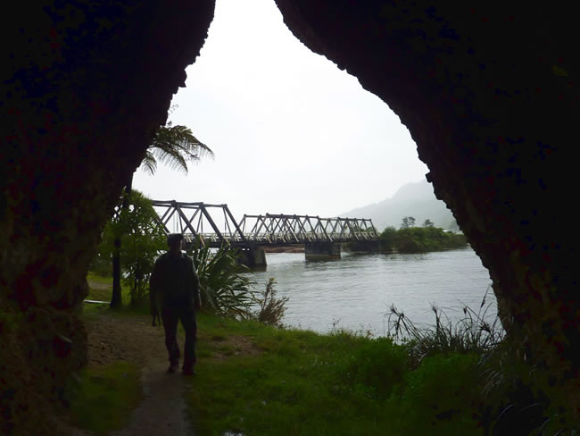 Punakaiki to GoldenBay, South Island, New ZealandWe walked across the bridge and explored an old tunnel on the other side. If we had more time we would have done the Fox River Caves Walk (1:15 hours one way). These deep caves are in the wall of a limestone gorge and feature stalactites and straws. I am told you should take a strong torch if you do decide to do that walk as it goes into the hillside about 200m and gets quite dark. Another one for next visit! Select the photo below to see more of this area. Previous | Album | Next |