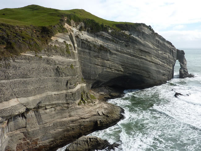 Farewell Spit to Foxton Beach, New ZealandA 5 minute walk up to the top of Cape Farewell from the car park resulted in these magnificent views of the towering vertical cliffs and the crashing waves of the Tasman Sea. Keep hold of your kids if you bring them here as there is only a short section of fencing. If you have a couple of hours for the Clifftop Walk, a track skirts along the cliff edges from here all the way up to Farewell Spit. We didn't have the time but I think it would be a great walk for next visit. Previous | Album | Next |