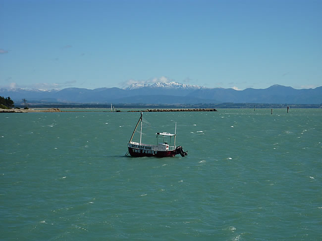 Farewell Spit to Foxton Beach, New ZealandWe stopped for lunch at Nelson with this magic view. As this area is well known for its seafood we tried their Blue Cod, Mussels and chips... YUM! If we had more time we could have booked a trip on 'The Ferry' (once an old crab boat) which cruises to Haulashore Island just out from Nelson or to the naturally formed Boulder Bank for a walk to the historic lighthouse. Maybe next time... Select the photo below to see our lunch spot. Previous |Album | Next |