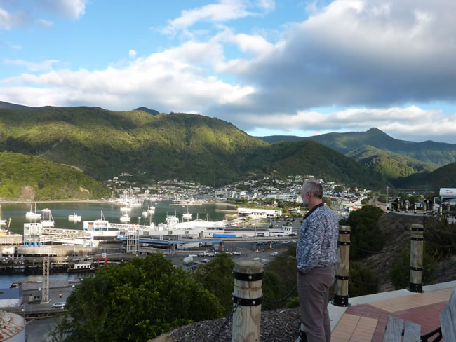 Farewell Spit to Foxton Beach, New ZealandPicton is at the head of Queen Charlotte Sound. As you enter the town this lookout gives you a great view of the harbour and the Blue Ridge Inter-island Ferry we hoped to travel across to Wellington on. Select the photo below to see more of this area. Previous | Album | Next |