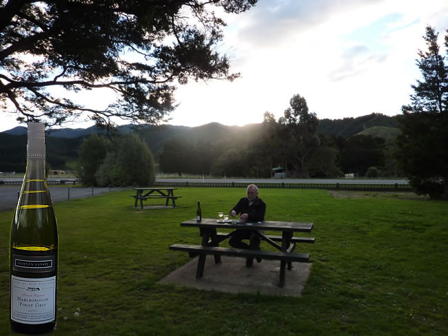Farewell Spit to Foxton Beach, New ZealandWe weren't able to get onto the last ferry of the day that would take us across Cook Strait to the North Island, so after a bit of a look around Picton, we headed just 5km south to a rest area at Mt Pleasant (campsite 17). And pleasant it was! We set ourselves up for our usual sunset drinks and nibblies and had a Marlborough Pinot Gris we had picked up on our travels. On the South Island we had stayed at only 1 Caravan Park (Queenstown) and 1 DOC site (Fiordland National Park) and all the rest of our campsites were free camps. As long as you have a camper with toilet and shower on board, you can do this quite easily in the South Island. I expect to use a lot more DOC sites (great value and great locations) in the North island, which is more heavily populated. Previous | Album | Next |