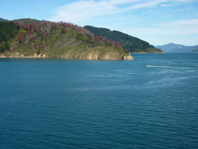 Farewell Spit to Foxton Beach, New ZealandIt was lovely weather which made the beautiful blue colour of the water in Queen Charlotte Sound stand out even more. We headed out of Picton Harbour passed lots of little bays, coves and islands. Select the photo below to see more of this area. Previous | Album | Next |