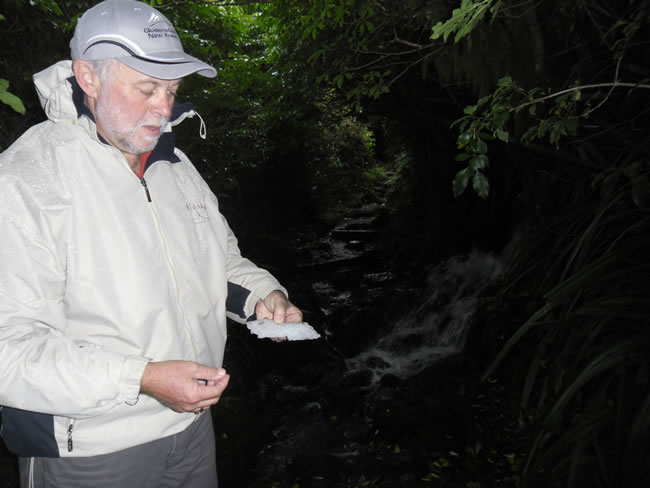 Wanganui to Lake Taupo, New ZealandWe followed the track which skirts around the Dawson Falls area. We were surprised to see ice on the side of the track reminding us how cold it had been last night! It obviously didn't warm up enough to melt today. Select the photo below to see more. Previous | Album | Next |