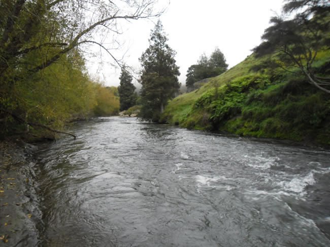 Wanganui to Lake Taupo, New ZealandThe Awakino River flows through the rugged King Country running alongside State Highway 3. It flows south from near Mahoenui to the Tasman Sea at Awakino. It is popular for its rainbow and brown trout fishing. Previous | Album | Next |