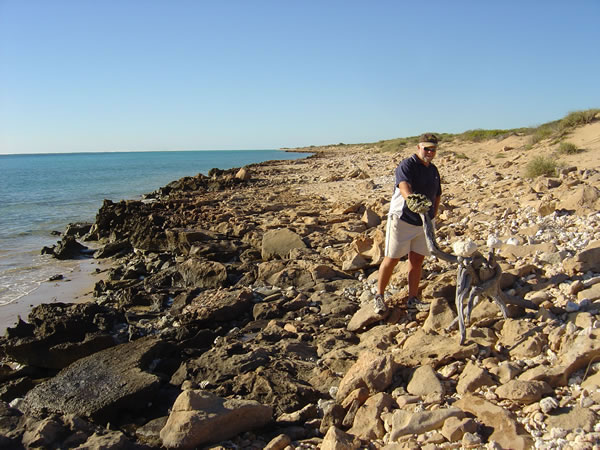 Ningaloo Reef, Cape Range National ParkOn our Tulki Beach walk, Pete decided to create some artistic masterpiece while I chased after colourful crabs trying to get them to stay still long enough for me to take their photo. We had lovely weather while we were in Cape Range National Park. Previous | Album | Next |