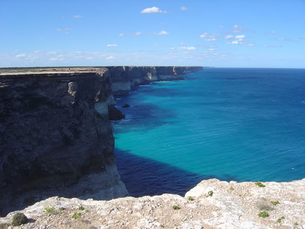 Eyre Highway, NullaborTry and imagine the map of Australia and this being the bottom edge, mid way along. The Bunda Cliffs stretch for miles and plunge 80m into the Southern Ocean. It is such an abrupt and dramatic end to the Nullabor Plateau. Previous | Album | Next |