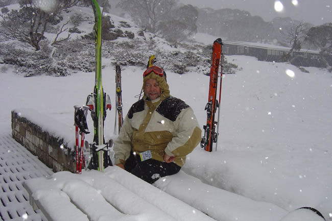 Ski Trip to Perisher Blue, New South WalesStill snowing! You can see the build-up on the picnic tables on the back verandah of the Sundeck. The lodge behind and others nearby are privately leased, some by groups that formed for that specific purpose years ago. The leases are coming to an end soon and their is speculation about whether they will be renewed. Previous | Album | Next |