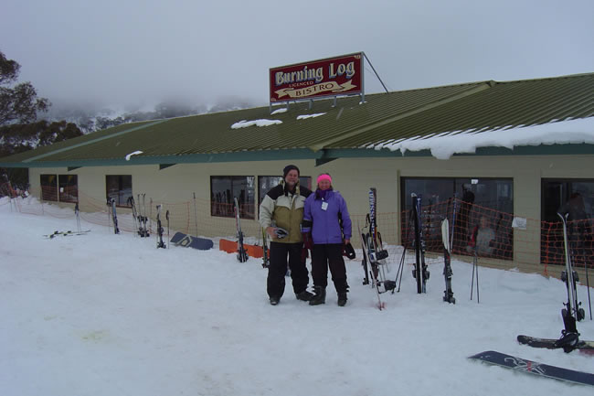 Ski Trip to Perisher Blue, New South WalesAnd just one more photo to prove that Pete & I were actually here together! This one was taken by a friendly person just as we were leaving the Burning Log Bistro. It is always a good spot to stop on a cold day. Previous | Album | Next |