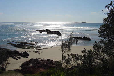 Red Rock River, New South WalesWe had often wanted to have a look at the campgrounds at Red Rock - a possible holiday of the future - so we decided to stop here for a break on our way to Sydney. Red Rock is located on the southern bank of the Red Rock River and is a ideal family holiday spot. It has public parkland and a patrolled beach during summer months, and both the river and the ocean offer great fishing and safe swimming. The Red Rock River marks the southern boundary of the Yuraygir National Park (near Grafton) and is popular for canoe and small craft access to wilderness areas. Previous | Album | Next |