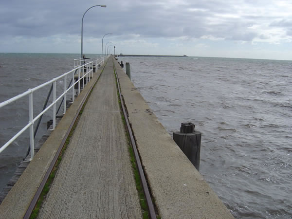 BusseltonNext stop was Busselton and the well-known Busselton Jetty. We hoped to go down into the underwater observatory to see the abundent marine life that lives around the jetty but it was closed for winter. Once the wind and rains come the visibility is limited so they close it down and it was certainly windy! The 1841m long wooden jetty has quite a history of disaster and rebuilding after cyclone and fire. Previous | Album | Next |
