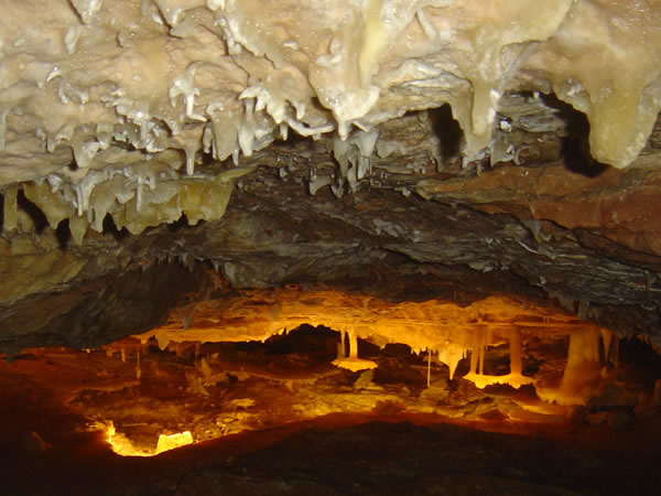 Ngilgi Cave, YallingupIn a small cavern off the side of the main cave were beautiful examples of hanging tables. The calcium carbonate has dripped down forming a stalactite that has met a layer of rock and built up on the floor of that layer. The layer of rock has since dropped leaving the table effect. Previous | Album | Next |