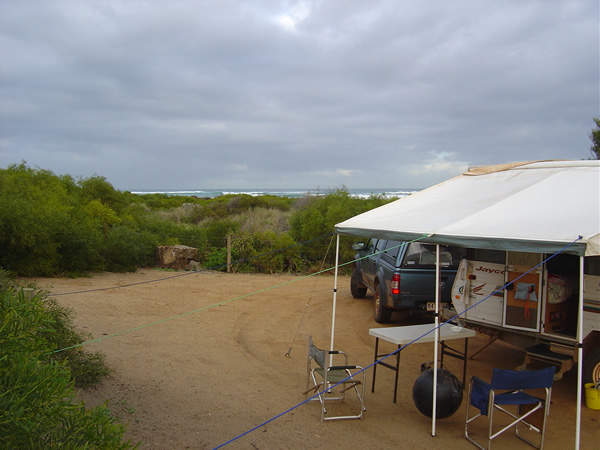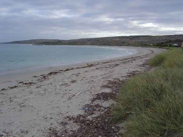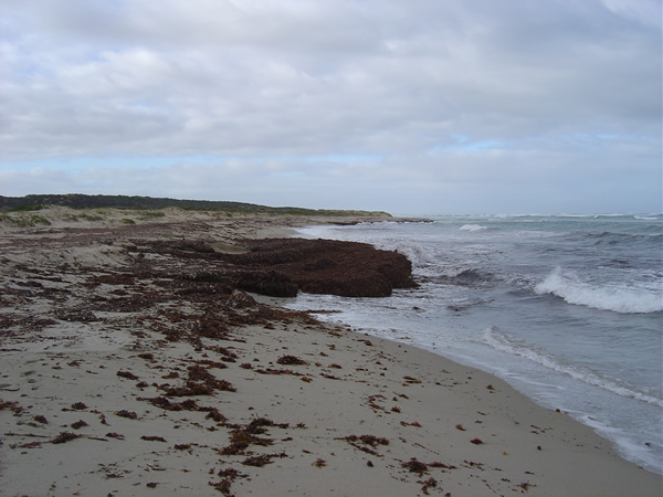 Coronation BeachUnfortunately it was overcast and rainy, but it was obvious that Coronation Beach would be beautiful in warmer sunnier weather. It is a favourite spot for wind surfers as it is a calm bay protected from the Indian ocean by a reef but still has the wind they need for their sport. The campground is only $5 per night and you are only 30m back from the sand - have a look at our campsite. Most of the beaches seem to have a lot of seaweed on them at the moment. Hopefully that will wash away again with the next storm. Previous | Album | Next |