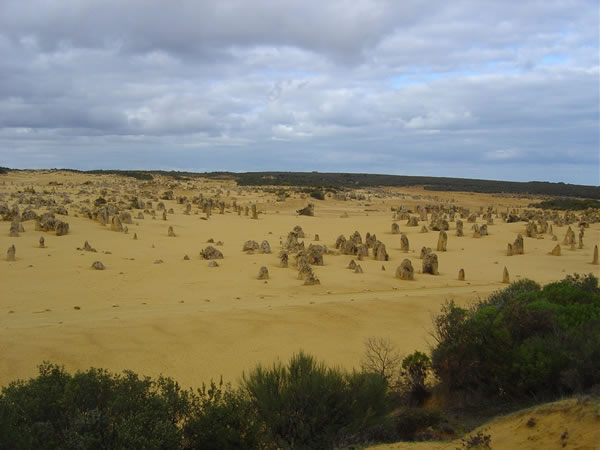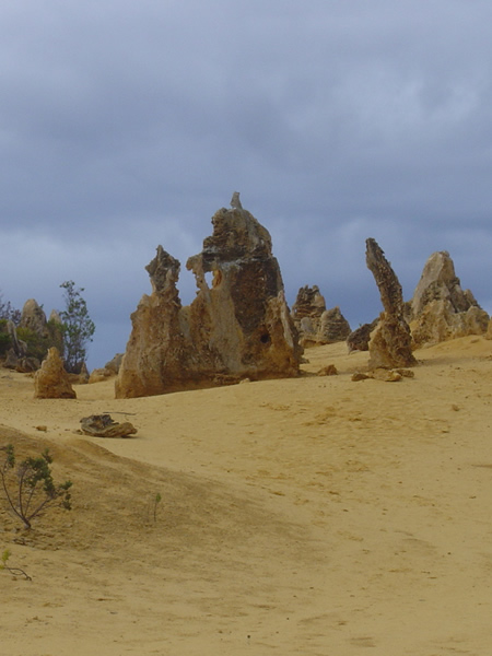 The Pinnacles, Nambung National ParkA one way loop track allows you to drive up close to the pinnacles which seem to go on for ever. Some limestone pillars have lost their protective calcrete layer and are severely eroded by the wind and rain. Previous | Home | Next |