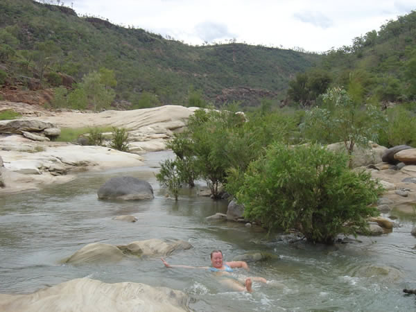 Porcupine Creek RapidsWe found a part of Porcupine Creek that had a deep enough pool and rocky handholds to stop us being swept away. We cooled off in the rapids before we started the trek back up the gorge to the campground. Previous | Album | Next |