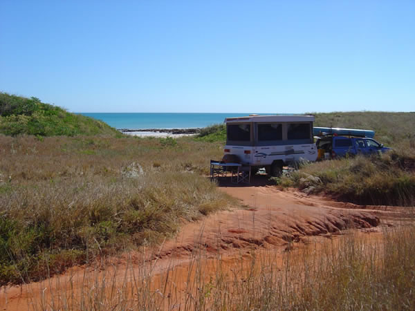 Quondong PointThe Lurujarri Heritage walking trail goes from Entrance Point in Broome north along the coastal beaches to Coulomb Point . You can access the trail and camping areas from various points along a coastal dirt road that comes off the Cape Leveque road 24km north of Broome. We decided to visit Quondong Point known for its fishing. All the camps along this trail are free and have no facilities so you need to be self sufficient. Previous | Album | Next |
