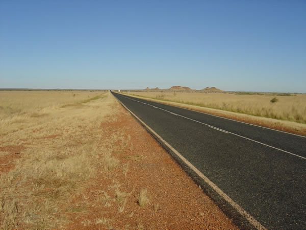 Broome to Port HedlandThis is typical of the countryside between Broome and Port Hedland. The road just stretches along forever in a straight line. The land is mostly flat in all directions. Not far inland from here you would be in The Great Sandy Desert. Previous | Album | Next |