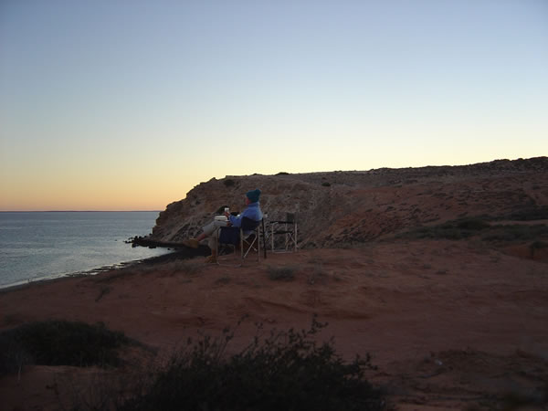 We had drinks and nibblies and watched out for dolphins and dugongs as the sun set over Eagle Bluff. It was starting to get cooler at night hence the beanie, jumper and Ugg boots/slippers.