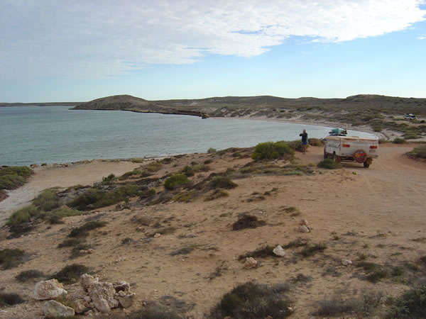 Shark Bay, Peron PeninsulaWe camped just south of Eagle Bluff where it overlooks Whalebone Bay. Great views! Next morning we investigated more of the area. This looked like a good spot to fish but we decided to leave that for next trip. Previous | Album | Next |