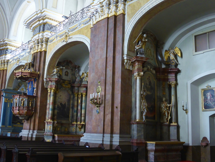 UK and Europe Roadtrip - BudapestThe church has been ornately decorated with lots of marble pillars and altars, gilded statues and other artifacts along with its impressive carved wood pulpit. Select the photo below to see the painted ceiling with its gilt decorative features. Previous | Album | Next |