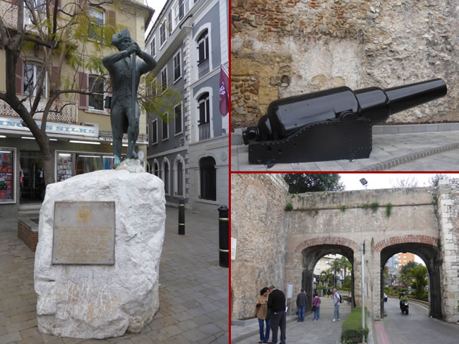 Gibraltar and Spanish Sth CoastThis monument (left photo) was presented to the people of Gibraltar by the Corps of Royal Engineers to commemorate their time here since 1704. The right photo shows a wall that has been here since Moorish times but this particular gate was commissioned by The Holy Roman Emperor, Charles 1 of Spain, after an attack on Gibraltar in 1540 by the Barbary Pirates. A second gate was made by the British in 1883. Previous | Album | Next |