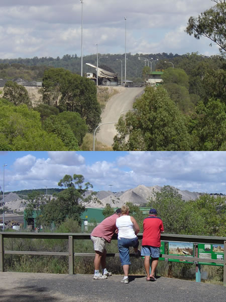 South Burnett Region - Tarong Power StationThe Tarong Power station gets its coal from the Meandu Mine located just west of Nanango & Yarraman. It is an open cut mine. You can see the truck dumping its load of coal onto the conveyor belt where it will go to the stockpile or to the Tarong Power Station 2km away. The conveyor can transport coal at a rate of 1800 tonnes per hour. Remember in the earlier photo the Boondooma Dam 97km away pipes the water to the power station. Previous | Album | Next |
