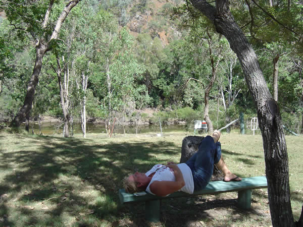 South Burnett Region - BlackbuttWe stopped for lunch at the Benarkin State Forest. There is a rest area when you first enter it or you can continue down the dirt road (well maintained for the timber trucks) to one of the two camping areas. Emu Creek camping area is the furtherest into the forest but I think is the nicest of the two. The creek has fish and a good swimming hole. Not really enough water to canoe but we will come back another time after rain. Previous | Album | Next |