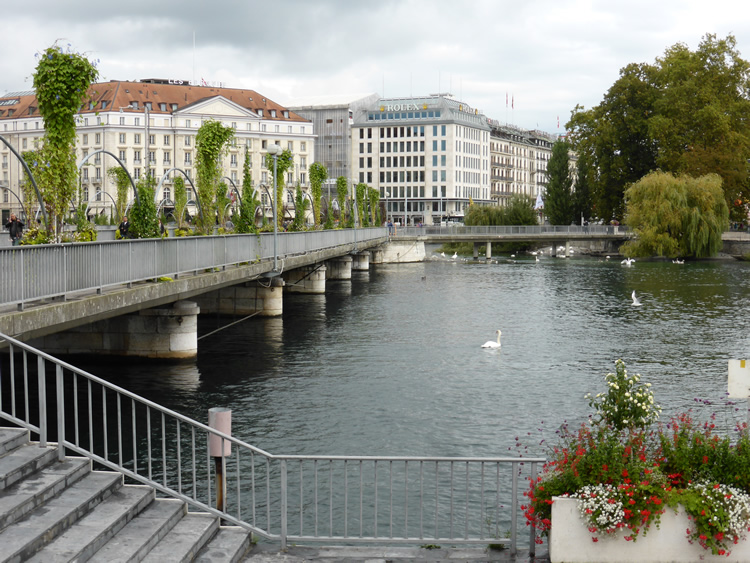 UK and Europe Roadtrip - GenevaPont du Mont-Blanc (Mont Blanc Bridge) crosses Lake Geneva connecting the left and right banks of the Rhône River and is where the river meets the lake. Select the photo below to see more of Lake Geneva. Previous | Album | Next |