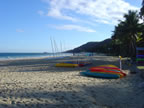 | A great weekend away from Brisbane starts with an hour trip to Moreton Island on the Tangalooma Flyer leaving the Brisbane River at Pinkenba. Tangalooma Resort is on the western side of the island facing the relatively calm waters of Moreton Bay. It is only 58 kilometers northeast of Brisbane. We walked along the beach watching sunsets, motored up to 'the wrecks' to snorkel amongst the coral and fish, went kayaking, fed the dolphins. Want to see Photos and Stories of other places in Australia? Use the Australia map to select another. |