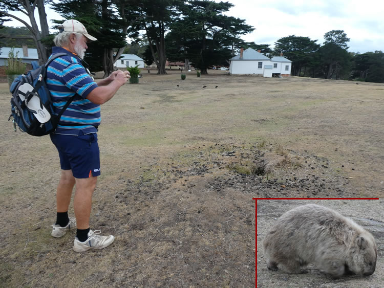 Tasmania Roadtrip - Week 7 - DarlingtonNear the historic penal settlement of Darlington with its white lime-washed buildings, there were small holes and wombat droppings everywhere. It wasn't until a bit later that we actually saw a wombat. Maria Island has plenty of them but they are not early risers! Previous | Album | Next |