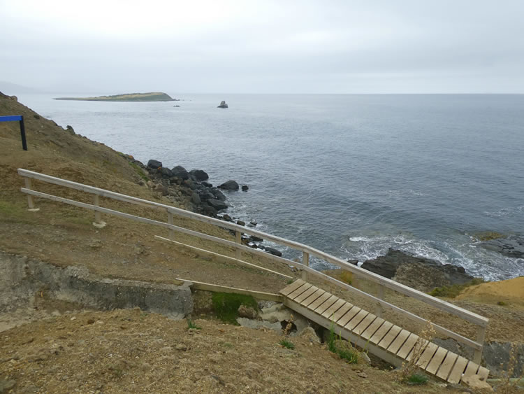 Tasmania Roadtrip - Week 7 - Fossil CliffsA board walk makes it easier to get down to where the fossils can be seen embedded in the sandstone rock. The French influence is seen here again as we spot the small island of Ile du Nord off Cape Boullanger. Apparently you can sometimes see seals or whales out from here. Previous | Album | Next |