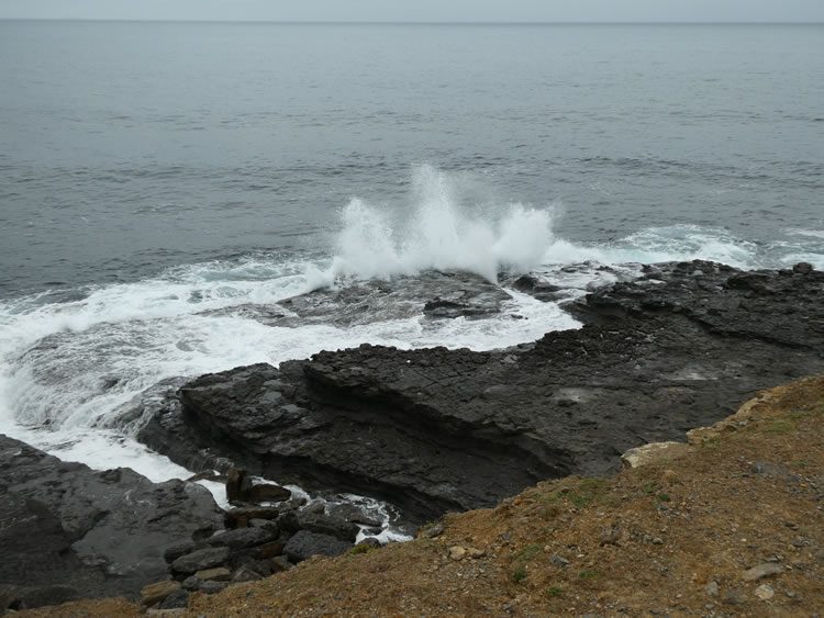Tasmania Roadtrip - Week 7 - Fossil CliffsThe waves off Fossil Cliffs are crashing spectacularly today in this calm weather so I imagine it would be mesmerising to watch in rougher seas. This shelf was formed by the quarrying activities in the 1920s. A tramway was used from here to transport the limestone to the cement works. Previous | Album | Next |