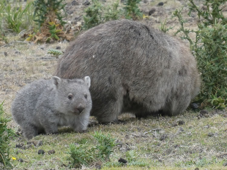 Tasmania Roadtrip - Week 7 - Maria WombatsHaving never seen a wombat alive until this trip, I had now seen plenty of them here on Maria Island. This was the cutest baby wombat following closely behind his mother but keeping a sharp eye on us at the same time. Previous | Album | Next |