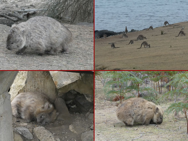 Tasmania Roadtrip - Week 7 - Maria IslandAs we wandered around we passed a large mob of kangaroos and many more wombats. The afternoon is the best time to see them as they scout around for food or laze around in some of the ruins. It has been a wonderful day on Maria Island but it is now time to head back. Previous | Album | Next |