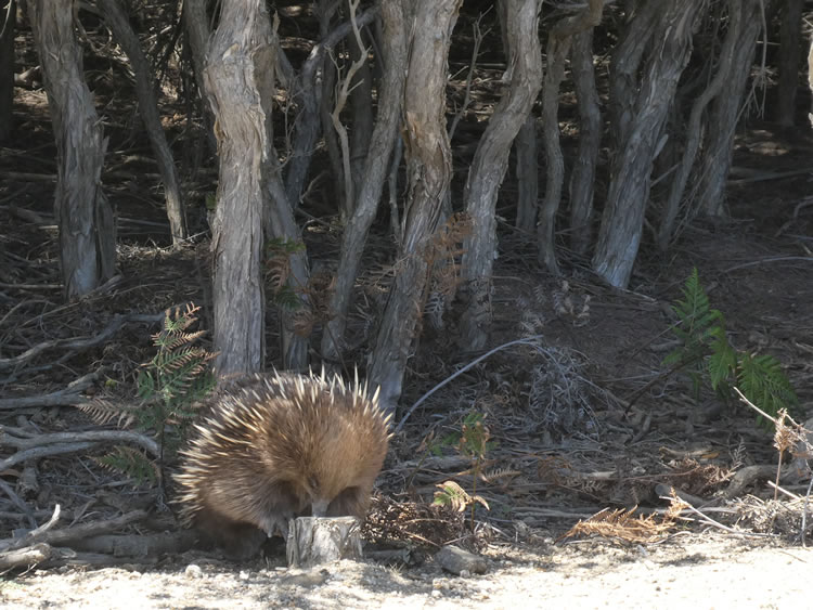 Tasmania Roadtrip - Week 7 - EchidnaWe are pleased we decided to do the shorter circuit because we spotted this Echidna beside the track trying to get some ants out of this tree stump. I am not sure you can call a spiky echidna cute and cuddly but it was definitely interesting to watch! Previous | Album | Next |