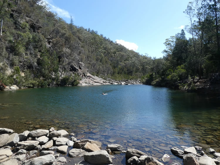 Tasmania Roadtrip - Week 8 - Apsley GorgeJust north of Bicheno you turn west towards Douglas-Apsley National Park. It is only a short walk to Apsley Gorge and the Apsley River swimming hole. It is quite deep here and so pretty cold to get in but lovely once you get used to it. Previous | Album | Next |