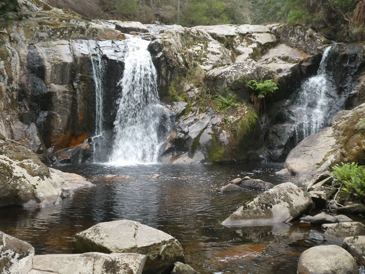 Tasmania Roadtrip - Week 8 - Halls FallsHalls Falls lies on the Groom River and drops from a weir, hand-made in the 1800s, just upstream from the waterfall. What is now a part of Blue Tier Forest Reserve was first settled in 1878 as a tin mining town. Just up the road you can see the Anchor Stamp Battery used to crush the ore in the early 1900s. Previous | Album | Next |