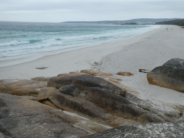 Tasmania Roadtrip - Week 8 - Cosy CornerSwimcart Beach runs from Cosy Corner all the way south to join up with Jeanneret Beach. There are four free beachfront camping areas along this stretch but in summer you need to get here early to get the best ones. Make sure you arrive before lunch. This photo is taken just 20m from our caravan. Previous | Album | Next |