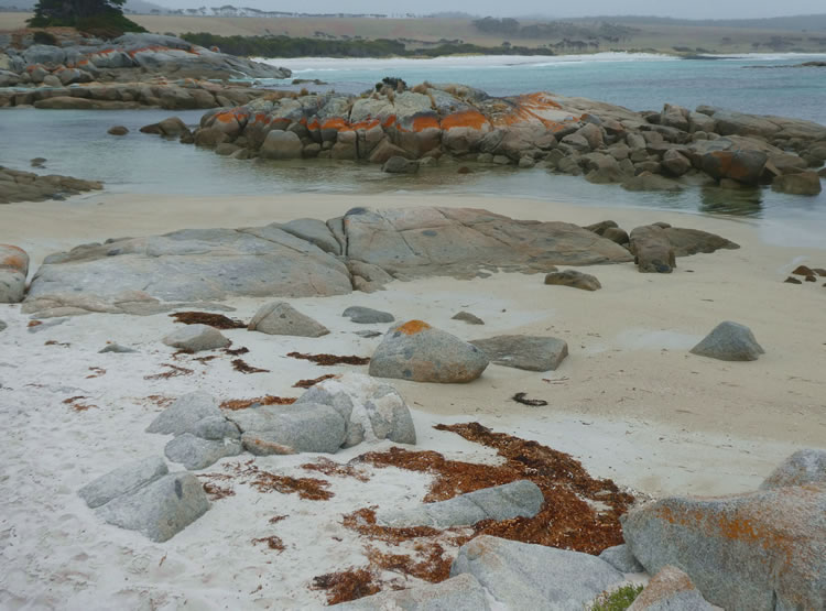 Tasmania Roadtrip - Week 8 - The GardensIt was rainy, cold and windy, not the best time to appreciate the beauty of The Gardens. On a finer day we might have a swim or continue around to the white sandy beach and along the Bay of Fires Coastal Track heading north for a while. Not today though! Previous | Album | Next |