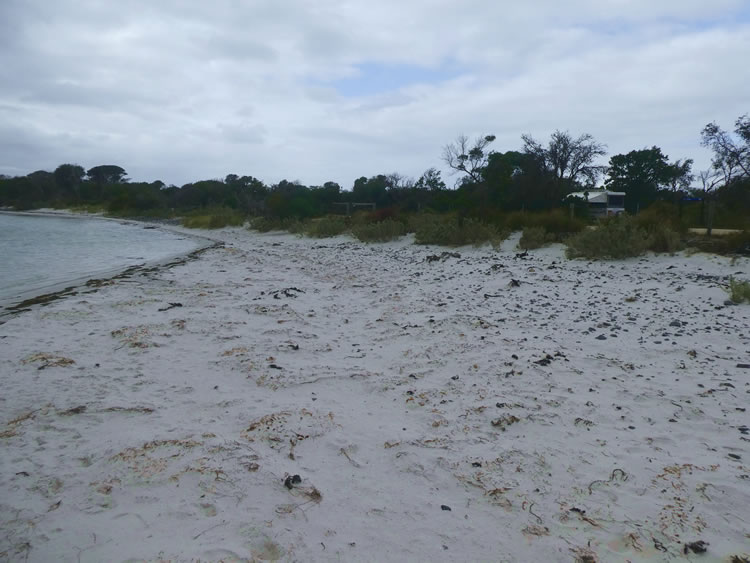 Tasmania Roadtrip - Week 8 - Policemans PointJust south was the turnoff onto Ansons Bay Road which we followed north to the end of the Bay of Fires. We set up camp at Policemans Point right on the mouth of the bay (free camp). You can see our caravan just behind the bushes. It looks very dark but that is because the bad weather has followed us! Previous | Album | Next |