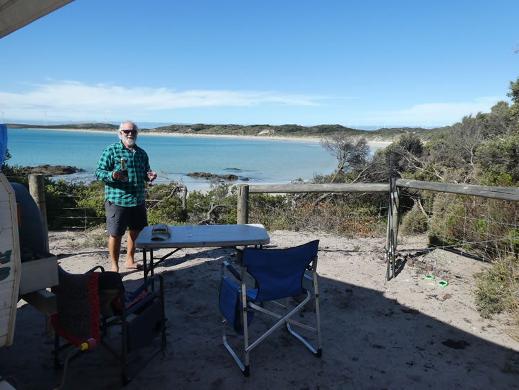 Tasmania Roadtrip - Cape PortlandOur view across Foster Inlet from our camp spot at Petal Point was of Lemon Beach all the way around Cape Portland. Yesterday we were walking on the opposite side of the cape looking at Little Musselroe Bay but the change in wind direction had brought us here. Previous | Album | Next |
