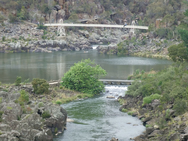 Tasmania Roadtrip - Cataract GorgeThere are a number of short walks around the gardens and across the footbridge. This chairlift was built in 1972 and spans this huge natural basin. The terminal buildings are 457m apart at First Basin near the pool and at the Cliff Grounds near the kiosk. Previous | Album | Next |